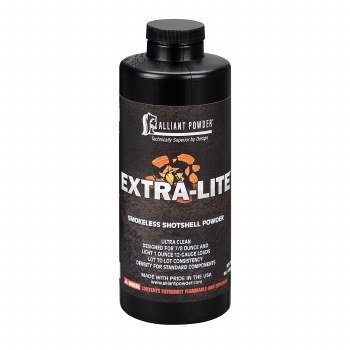 Our new shotshell propellant provides less cost, less recoil and less headaches for those 12 gauge shooters transitioning from 1 1/8 ounce to 7/8 and 1 ounce loads. We understand that many shooters are looking for a powder that will have a density that allows use of standard components (wads and cases). These same shooters also want pressure levels that guarantee complete combustion across a broad temperature range while still being clean burning. Well… now they have it with Extra-Lite from Alliant Powder®.