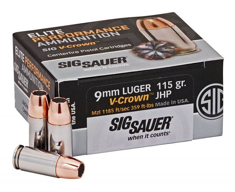 SIG V-Crown defensive rounds combine perfected material specifications and fine-tuned design innovations, including a stacked hollow point cavity, to deliver exceptional on-target energy with maximum weight retention and optimal expansion for ultimate stopping power.