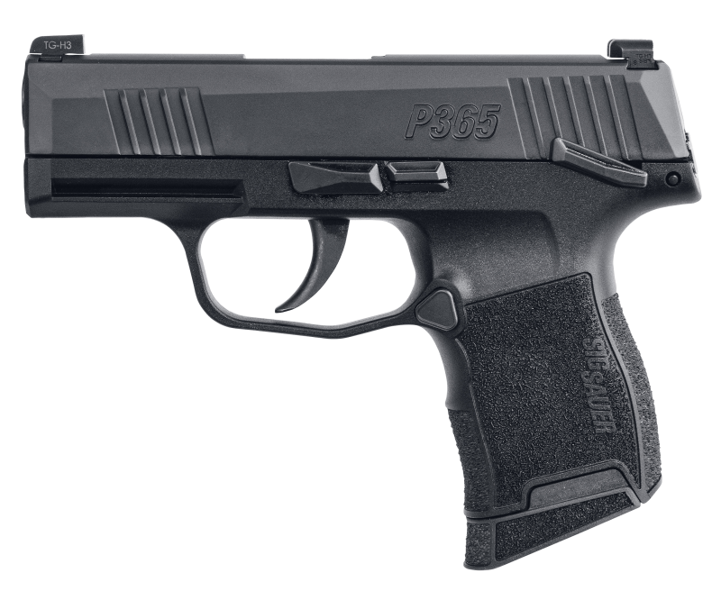 Sig’s pistols are engineered to perform anywhere, at any time, and under any circumstance. They boast unique, advanced features that stand out among the rest. The P365 high-capacity, micro-compact pistol is a revolutionary concealed carry that gives you more capacity, concealability, and capability. It is striker-fired, with a nitron finished stainless steel frame and slide, and has a polymer grip. The proprietary magazine design allows for a 10 round capacity in both the flush fit and extended grip sizes. The P365 is rated for P ammunition and comes with one flush and extended magazine. This model has a black finish, manual safety, and X-Ray3 day/night sights.